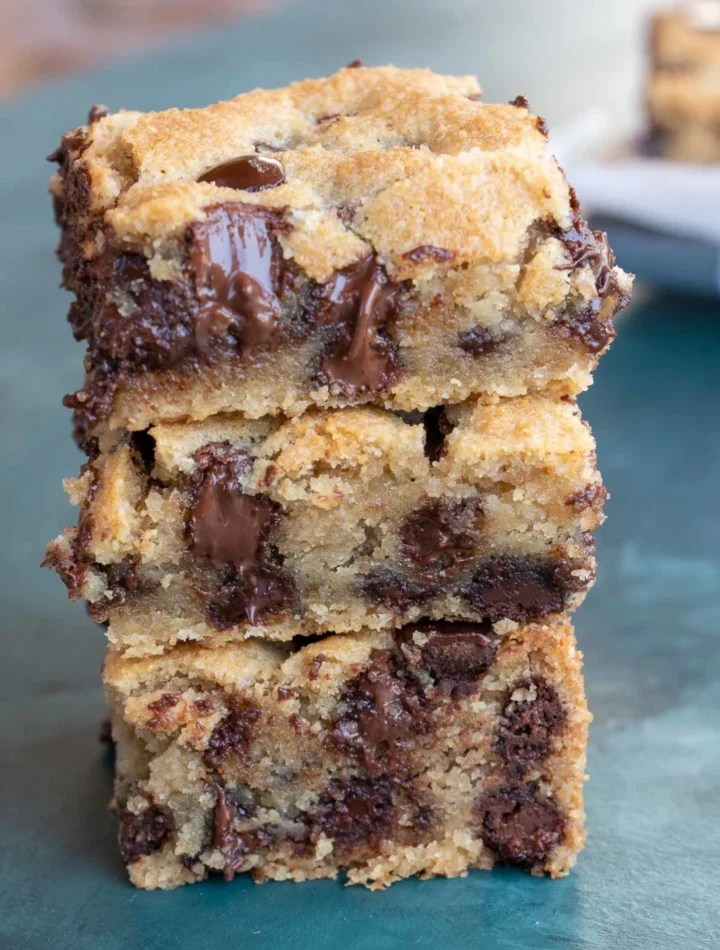 These keto-friendly chocolate chip cookie bars are soft in the center, golden on the edges, and packed with melty chocolate chips. They’re easy to make and perfect for a weekly low carb treat.